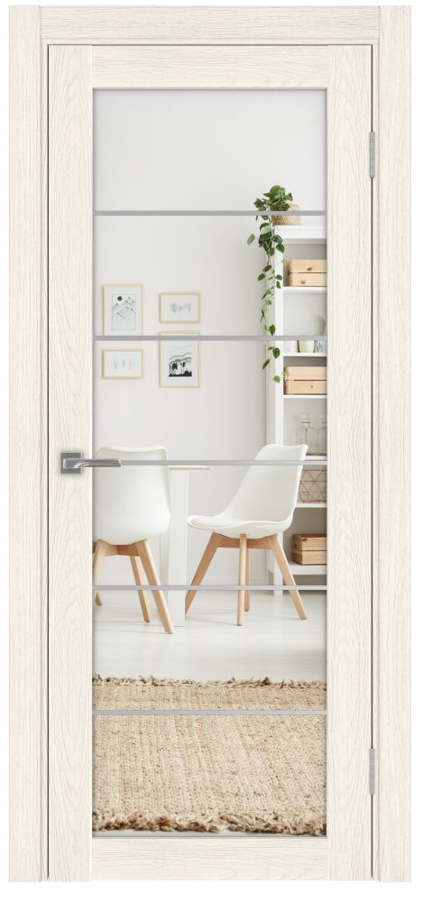 Дверь Эко 501.2 АСС ясень светлый молдинг SC, зеркало с 2-х сторон