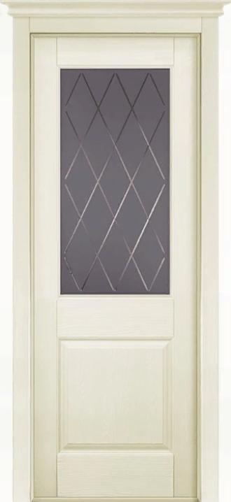 Дверь ОКА браш массив сосны Элегия эмаль слоновая кость, стекло графит