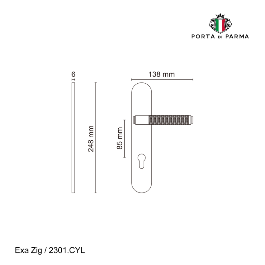 Дверная ручка на планке Porta Di Parma модель Exa Zig 2301.CYL под цилиндр