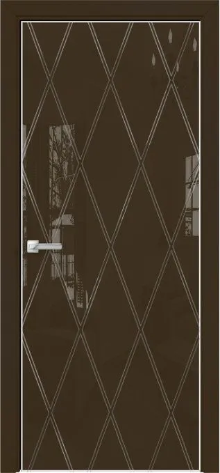 Дверь Оникс Арт, лакобель коричневый RAL 8028, контурный витраж №11