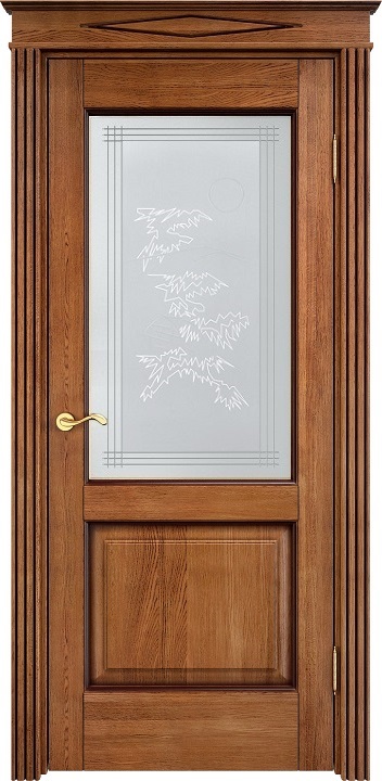 Дверь ПМЦ массив дуба Д13 орех 10% с патиной, стекло 13-2
