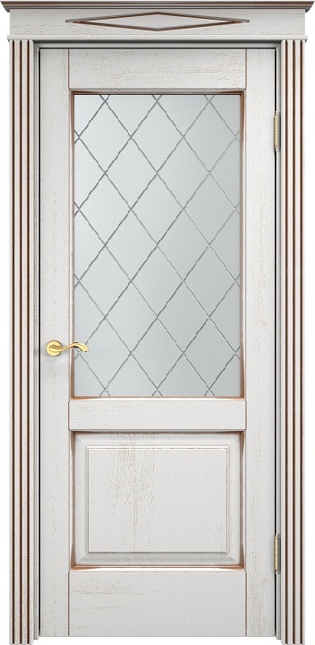 Дверь ПМЦ массив дуба Д13 белый грунт с патиной орех, стекло 13-10