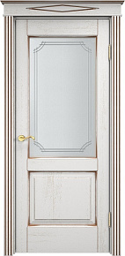 Дверь ПМЦ массив дуба Д13 белый грунт с патиной орех, стекло 13-5