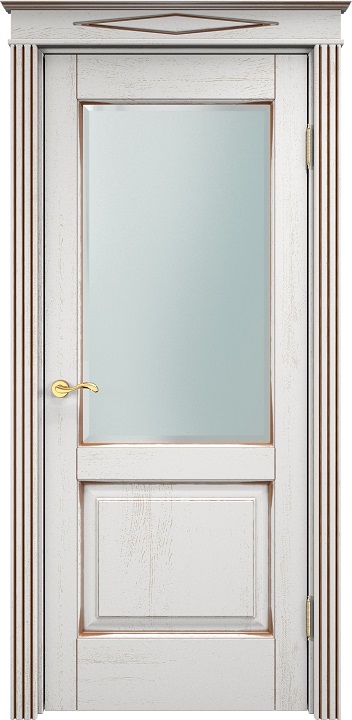 Дверь ПМЦ массив дуба Д13 белый грунт с патиной орех, стекло фацет