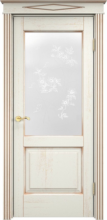 Дверь ПМЦ массив дуба Д13 эмаль F120 с золотой патиной, стекло 13-4