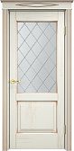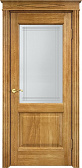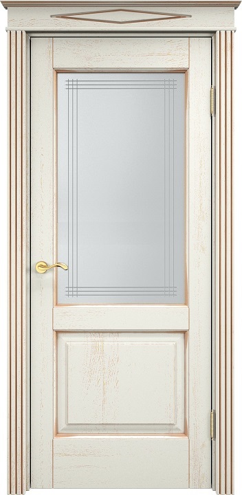 Дверь ПМЦ массив дуба Д13 эмаль F120 с золотой патиной, стекло 13-6
