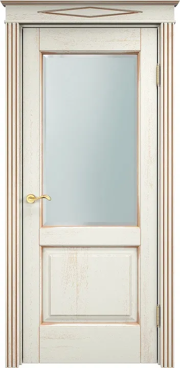 Дверь ПМЦ массив дуба Д13 эмаль F120 с золотой патиной, стекло фацет