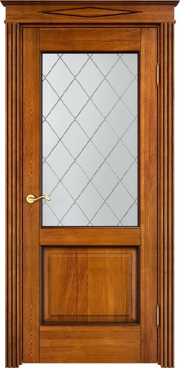 Дверь ПМЦ массив дуба Д13 медовый с патиной орех, стекло 13-10