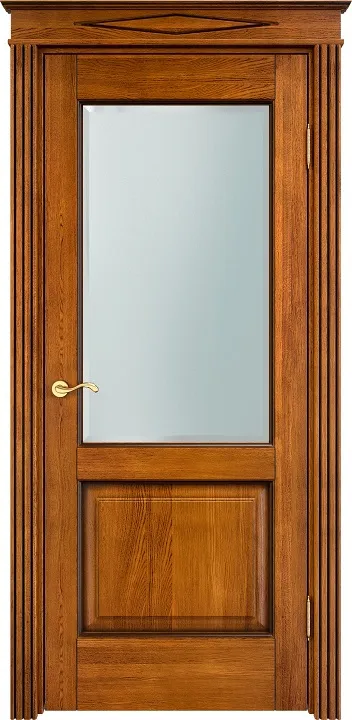 Дверь ПМЦ массив дуба Д13 медовый с патиной орех, стекло фацет