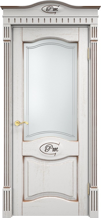 Двери в интерьере - Дверь ПМЦ массив дуба Д3 белый грунт с патиной орех, стекло 3-2
