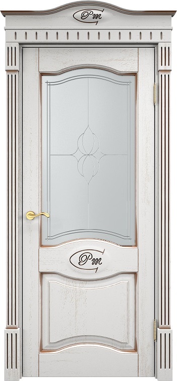 Дверь ПМЦ массив дуба Д3 белый грунт с патиной орех, стекло 3-3