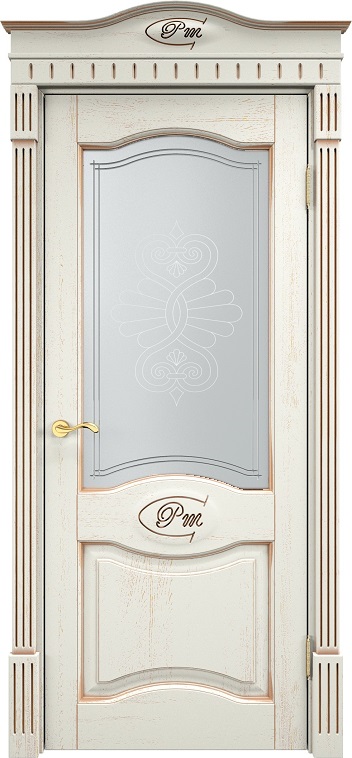 Дверь ПМЦ массив дуба Д3 эмаль F120 с золотой патиной, стекло 3-1