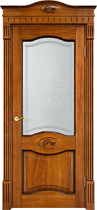 Дверь ПМЦ массив дуба Д3 медовый с патиной орех, стекло 3-1