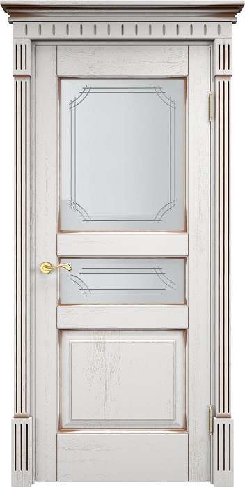 Дверь ПМЦ массив дуба Д5 белый грунт с патиной орех, стекло 5-1