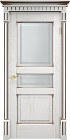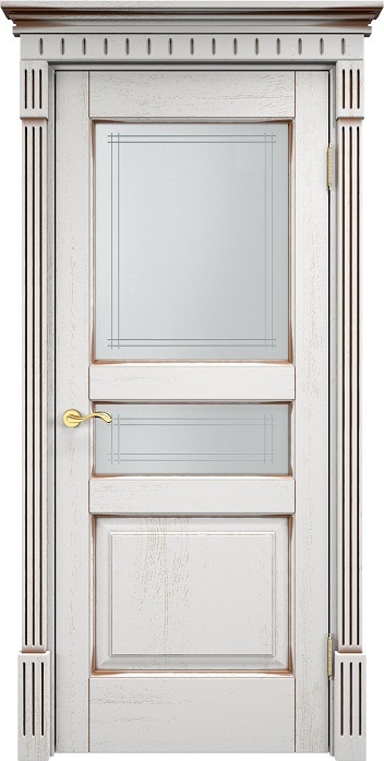 Дверь ПМЦ массив дуба Д5 белый грунт с патиной орех, стекло 5-3