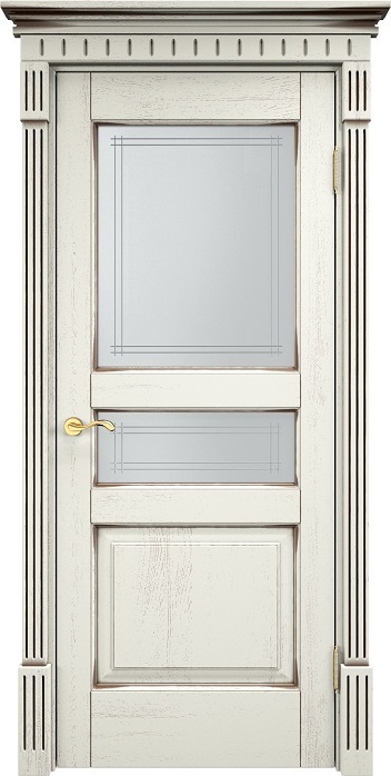 Дверь ПМЦ массив дуба Д5 эмаль F120 с черной патиной, стекло 5-3