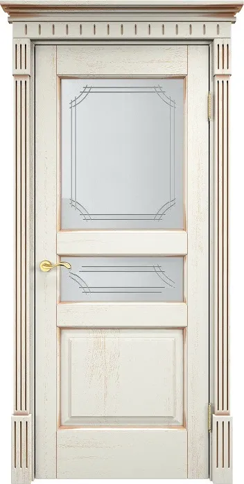 Дверь ПМЦ массив дуба Д5 эмаль F120 с золотой патиной, стекло 5-1