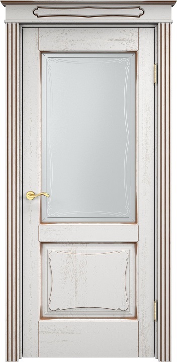 Дверь ПМЦ массив дуба Д6 белый грунт с патиной орех, стекло 6-4