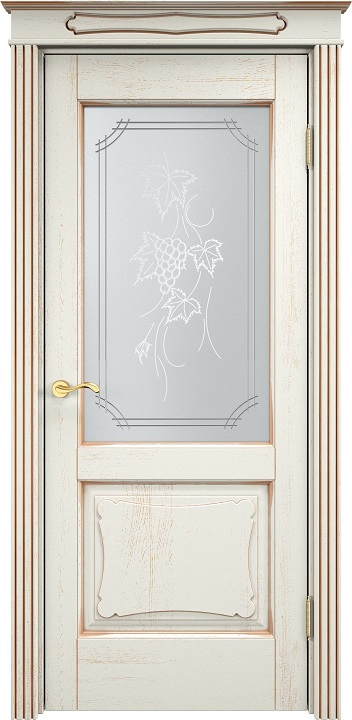 Дверь ПМЦ массив дуба Д6 эмаль F120 с золотой патиной, стекло 6-2