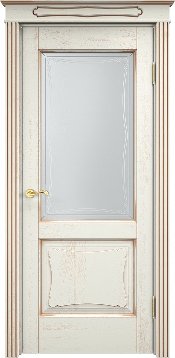 Дверь ПМЦ массив дуба Д6 эмаль F120 с золотой патиной, стекло 6-4