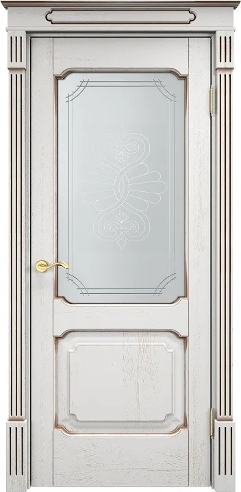 Дверь ПМЦ массив дуба Д7 белый грунт с патиной орех, стекло 7-2