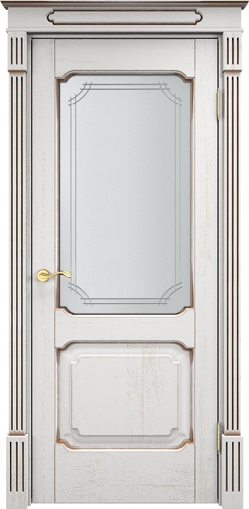 Дверь ПМЦ массив дуба Д7 белый грунт с патиной орех, стекло 7-3