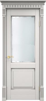 Дверь ПМЦ массив ольхи ОЛ13 белый грунт с патиной серебро, стекло мателюкс