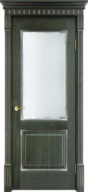 Дверь ПМЦ массив ольхи ОЛ13 зеленый с патиной серебро, стекло мателюкс
