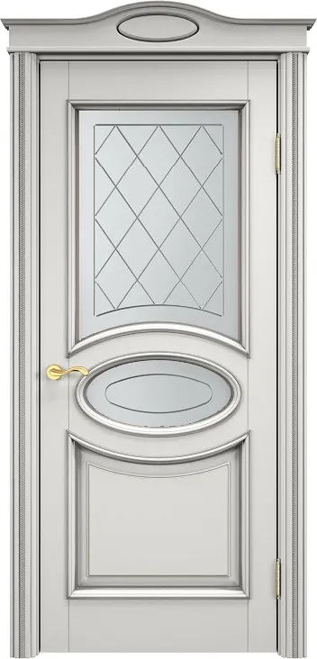 Дверь ПМЦ массив ольхи ОЛ26 белый грунт с патиной серебро, стекло 26-2
