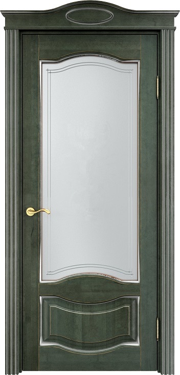 Дверь ПМЦ массив ольхи ОЛ33 зеленый с патиной серебро, стекло 33-2