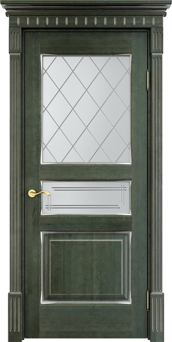 Дверь ПМЦ массив ольхи ОЛ5 зеленый с патиной серебро, стекло 5-2