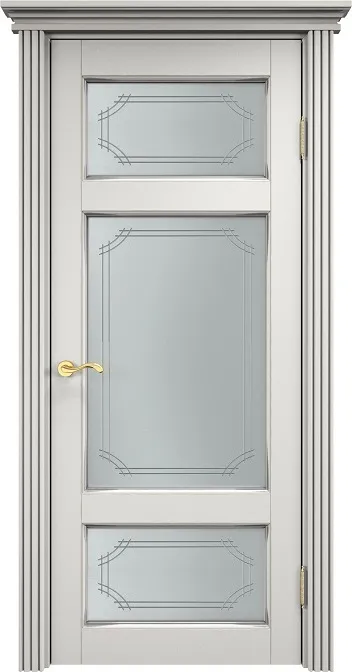 Дверь ПМЦ массив ольхи ОЛ55 белый грунт с патиной серебро, стекло 55-1