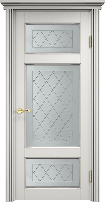 Дверь ПМЦ массив ольхи ОЛ55 белый грунт с патиной серебро, стекло 55-8