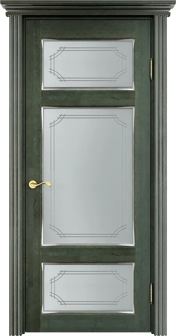 Дверь ПМЦ массив ольхи ОЛ55 зеленый с патиной серебро, стекло 55-1