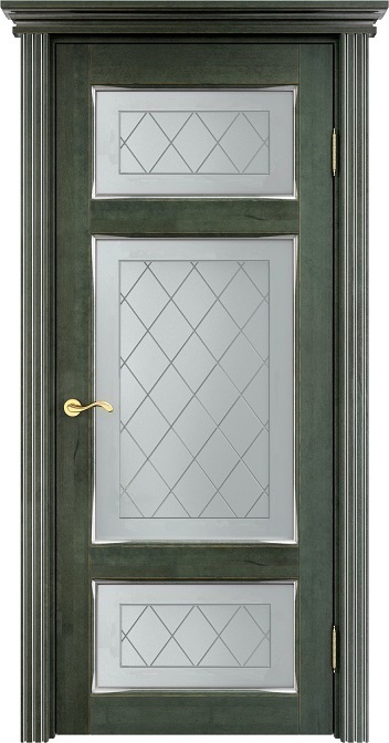 Дверь ПМЦ массив ольхи ОЛ55 зеленый с патиной серебро, стекло 55-8