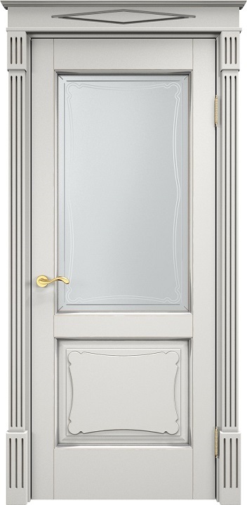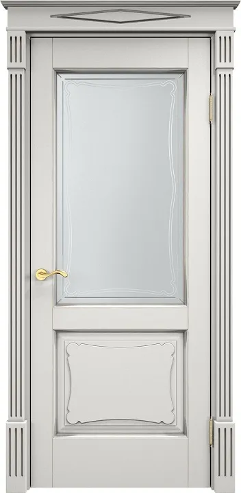 Дверь ПМЦ массив ольхи ОЛ6.2 белый грунт с патиной серебро, стекло 6-4
