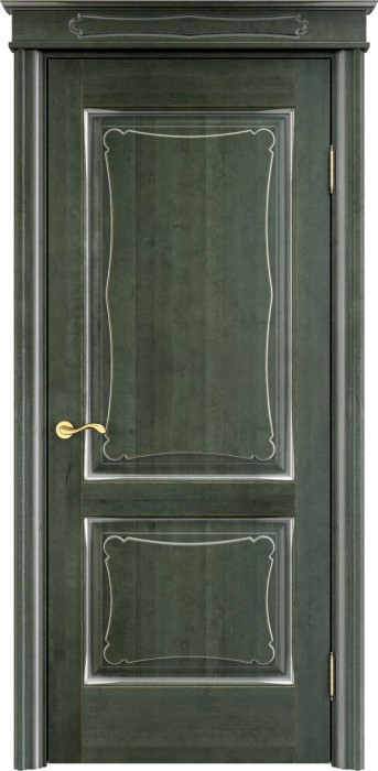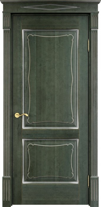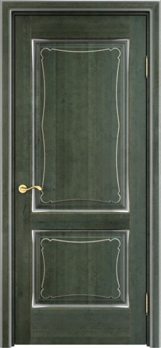 Дверь ПМЦ массив ольхи ОЛ6.2 зеленый с патиной серебро, глухая