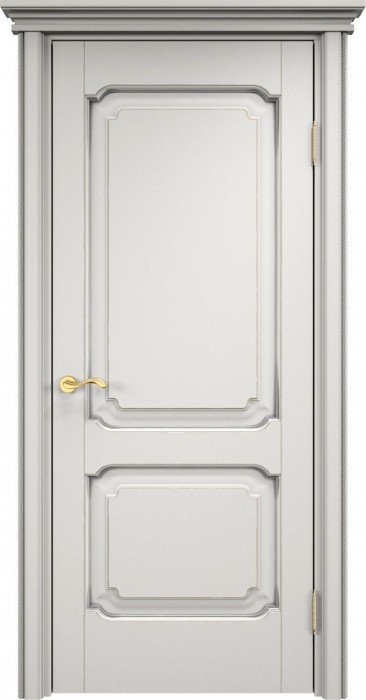Дверь ПМЦ массив ольхи ОЛ7.2 белый грунт с патиной серебро, глухая