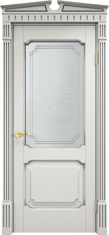 Дверь ПМЦ массив ольхи ОЛ7.2 белый грунт с патиной серебро, стекло 7-2