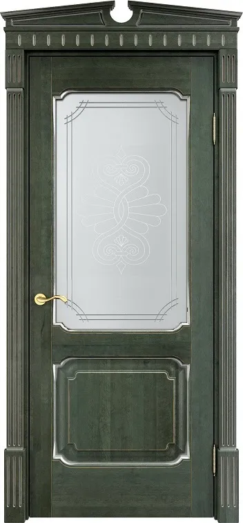 Дверь ПМЦ массив ольхи ОЛ7.2 зеленый с патиной серебро, стекло 7-2