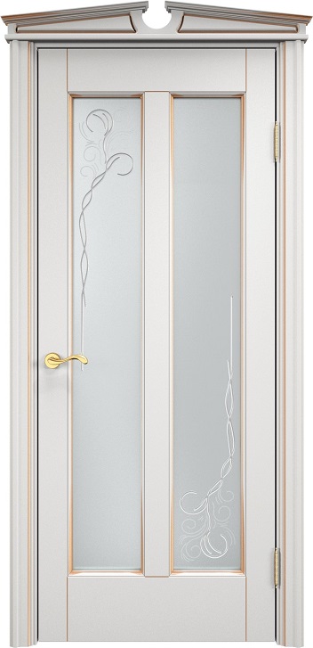 Дверь ПМЦ массив ольхи ОЛ102 белый грунт с патиной золото, стекло 102-2