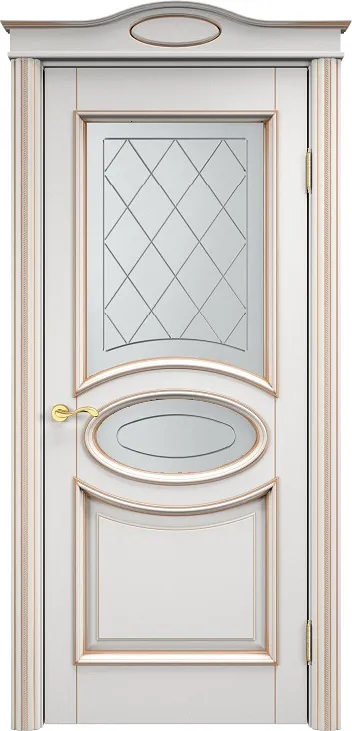 Дверь ПМЦ массив ольхи ОЛ26 белый грунт с патиной золото, стекло 26-2