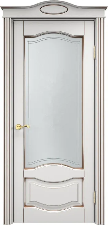 Дверь ПМЦ массив ольхи ОЛ33 белый грунт с патиной орех, стекло 33-2