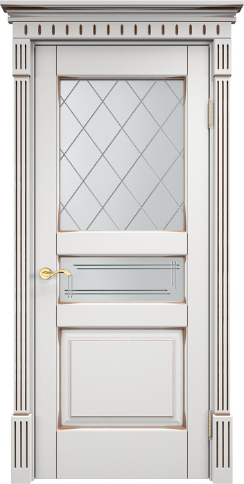 Дверь ПМЦ массив ольхи ОЛ5 белый грунт с патиной орех, стекло 5-2