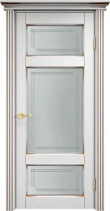 Дверь ПМЦ массив ольхи ОЛ55 белый грунт с патиной орех, стекло 55-4