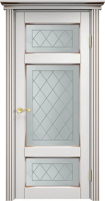 Дверь ПМЦ массив ольхи ОЛ55 белый грунт с патиной орех, стекло 55-8