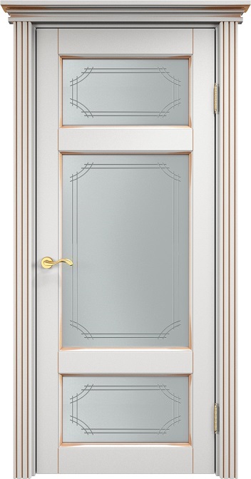 Дверь ПМЦ массив ольхи ОЛ55 белый грунт с патиной золото, стекло 55-1