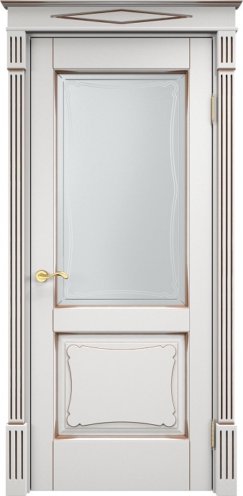Дверь ПМЦ массив ольхи ОЛ6.2 белый грунт с патиной орех, стекло 6-4