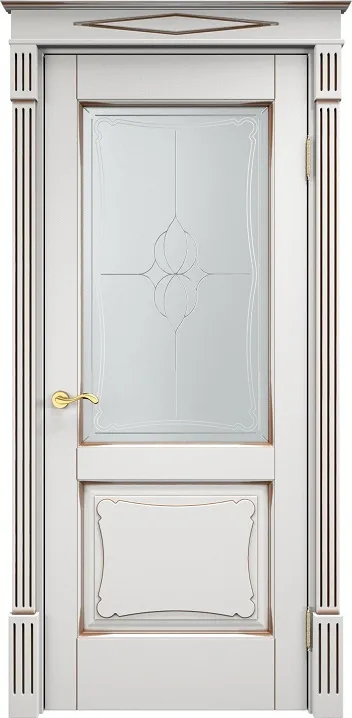 Дверь ПМЦ массив ольхи ОЛ6.2 белый грунт с патиной орех, стекло 6-5