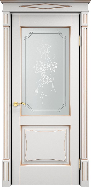 Дверь ПМЦ массив ольхи ОЛ6.2 белый грунт с патиной золото, стекло 6-2